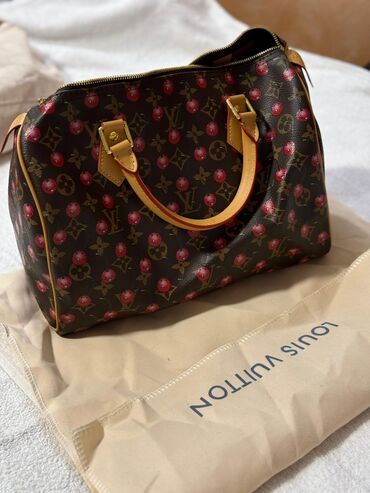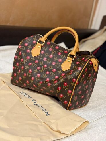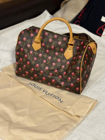 - Materijal: LV monogram obloženo platno sa specijalnim printom crvenih trešanja; prirodna koža na ručkama, završecima i ivicama