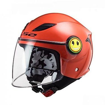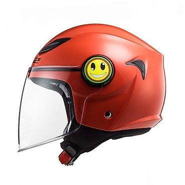 Stilizovana, lagana kaciga idealna za gradsku vožnju skutera i motocikala, sa prepoznatljivim narandžastim finišem i osmehom koji privlači pažnju.