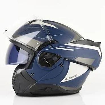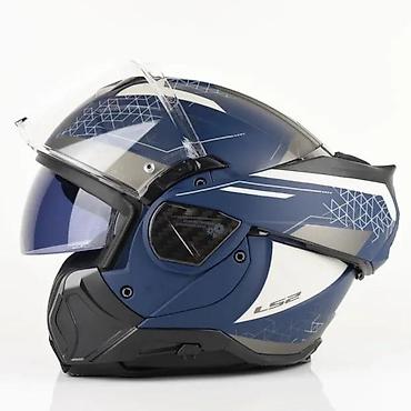 - Boja/grafika: mat plava sa srebrnim i belim geometrijskim detaljima, LS2 logotip