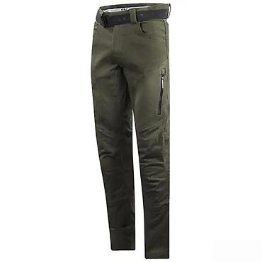 Muške pantalone u tamnozelenoj boji, izrađene od tkanine. Poseduju regularan struk i ravan kroj nogavica, pogodne za različite aktivnosti. Opremljene su prednjim i bočnim džepovima, uključujući jedan sa rajsferšlusom za sigurno odlaganje sitnica. Dolaze sa kaišem za dodatno podešavanje. Praktičan izbor za svakodnevno nošenje ili aktivnosti na otvorenom.