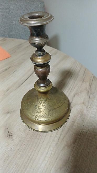 Detaljno izrađen komad sa bogatim ornamentalnim motivima koji ističu istorijski i umetnički karakter svećnjaka.