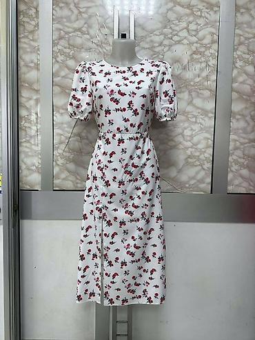 Midi haljina s floralnim printom - Boja: bela osnova sa sitnim