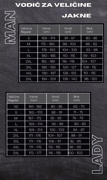 Priložena je tabela veličina (visina, obim grudi i struka) radi lakšeg odabira. Idealna za putovanja, gradsku vožnju i vožnju po svim vremenskim uslovima.