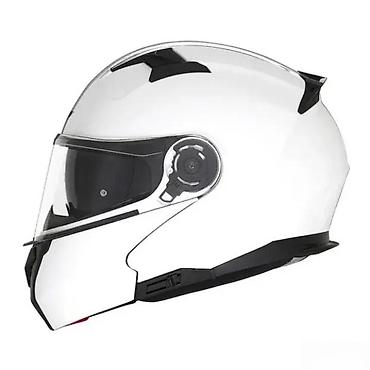 Modularna moto kaciga – bela, preklopna (flip-up) sa integrisanim
