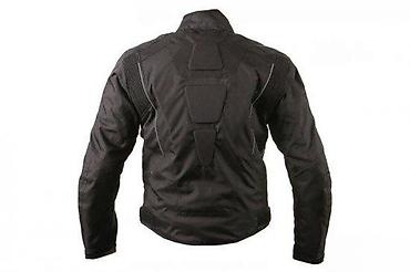 - Materijal: izdržljiva tekstilna tkanina pogodna za vožnju motocikla; elastični paneli na ramenima i lopaticama za bolju pokretljivost.