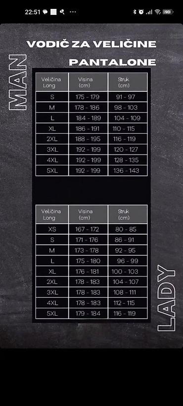 Vodič za veličine (muški – long):