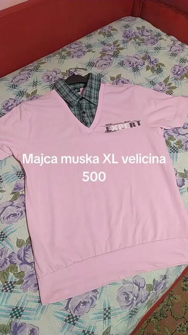 1) Svetloružičasta majica sa V‑izrezom, natpis „EXPERT“. Veličina: XL. Cena: 500.