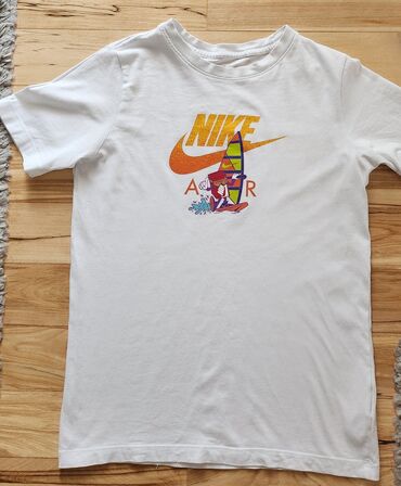 Bela majica kratkih rukava za dečake TRN BOY. - Veličina/uzrast: 12–13 godina - Preporučena visina: 152–158 cm (navedeno na etiketi) - Materijal: mekani pamučni dres (lagan i prozračan) - Kroj: kl...