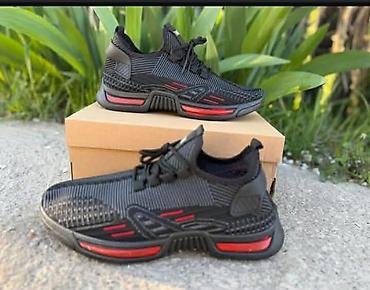 Crne sportske patike sa vazdušnim jastucima u đonu. Gornjište od
