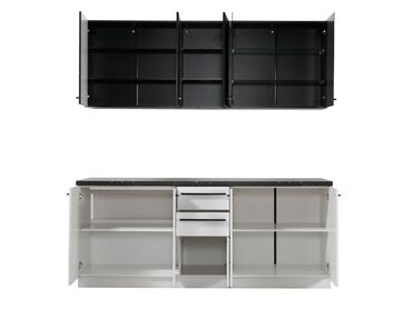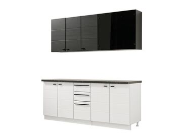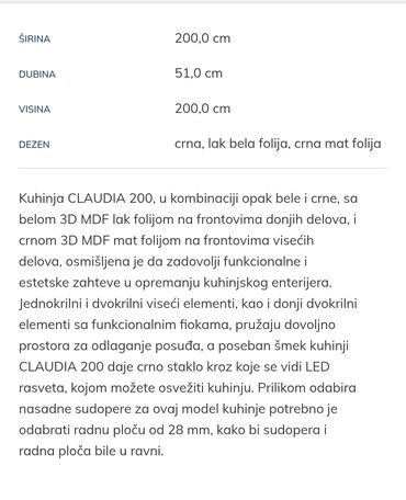 Kuhinjski set – donji i gornji elementi sa sudoperom - Materijal: iverica obložena dekor folijom u belom mermer efektu - Konfiguracija donjih elemenata: tri odvojene jedinice - Levi element: jed...