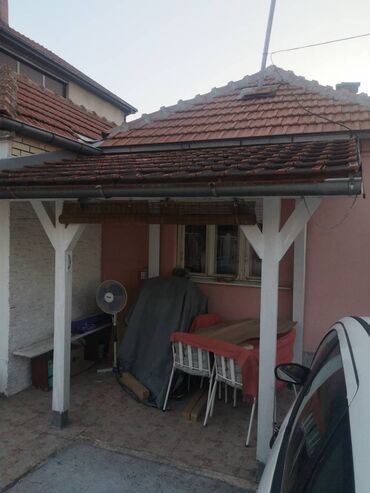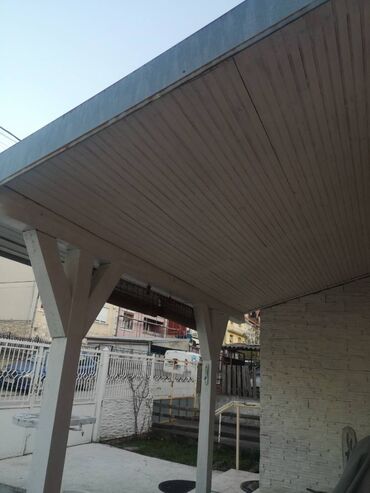 Pokupiti na licu mestaНадстрешница 7 м2. На 4 стуба. Виша страна је 2,70m. а предња нижа је 2,20 метра висине. Плафон ламперија, покривена црепом.