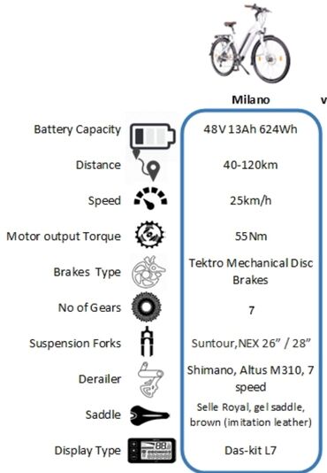 - Okvir sa integrisanom baterijom (48V 13ah), oznaka Milano 48V.