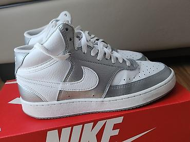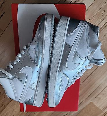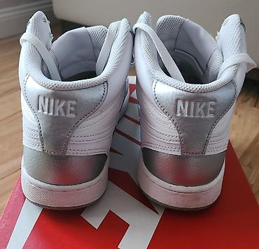 Nike kožne patike – visok model, bele sa srebrnim panelima, br