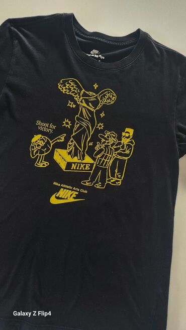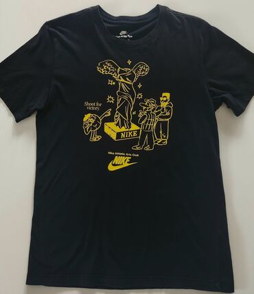 - Grafika na prednjoj strani u žutoj boji: ilustracija krilatog kipa, likova i natpisa “Shoot for victory.”, “Nike Athletic Arts Club” i Nike Swoosh.