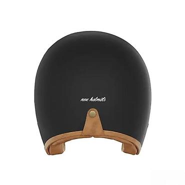 Nox Helmets open-face moto kaciga – klasičan retro dizajn u mat crnoj boji sa kožnim detaljima.