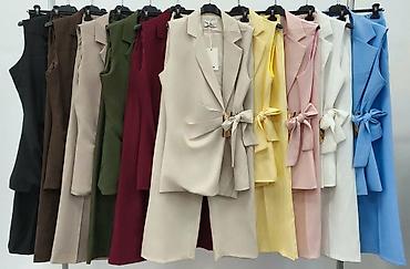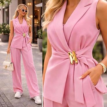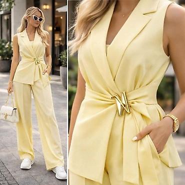 Elegantni ženski komplet bez rukava – sako prslučić i široke pantalone
