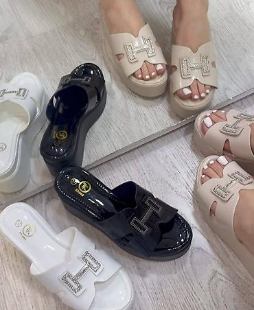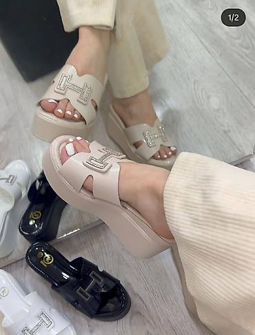Ženske platforme papuče sa ukrasnim “H” detaljem od cirkona.
