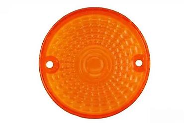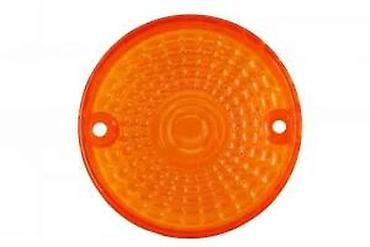 Okruglo amber staklo za žmigavac, dizajnirano za jasnu signalizaciju. Karakteriše ga kružni oblik sa blago teksturiranom površinom za optimalnu disperziju svetlosti. Poseduje dve rupe za montažu, što omogućava jednostavno i sigurno pričvršćivanje. Idealno za zamenu oštećenih ili dotrajalih sočiva na vozilima.
