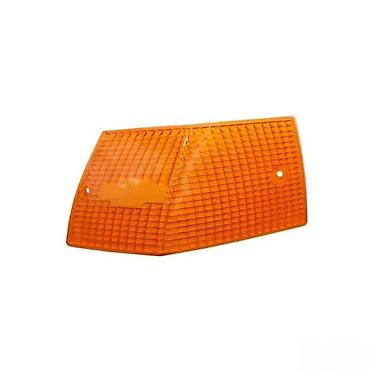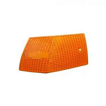 Narandžasti poklopac za pokazivač pravca (žmigavac) za automobil, karakterističnog trapezoidnog oblika. Predviđen je za montažu sa dva šrafa, čije su rupe jasno vidljive. Teksturirana površina obezbeđuje optimalno rasipanje svetlosti. Idealan je za zamenu oštećenog ili dotrajalog poklopca, čime se osigurava pravilna signalizacija na vozilu.