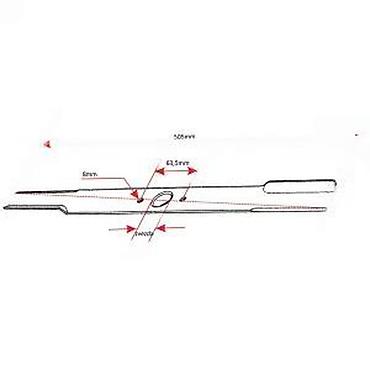 Nož za kosilicu dužine 505 mm, dizajniran za efikasno košenje travnjaka. Sečivo je crne boje, sa centralnim otvorom u obliku zvezde i dva manja okrugla otvora prečnika 8 mm, razmaknutih 63.5 mm od centra. Ove dimenzije osiguravaju kompatibilnost sa širokim spektrom kosilica koje koriste standardne sisteme montaže. Ivice su oblikovane za optimalno sečenje i prikupljanje trave. Idealno kao zamenski deo za održavanje i poboljšanje performansi vaše kosilice.