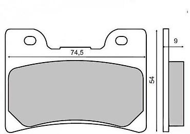 Set kočionih pločica dizajniranih za motocikle i skutere. Pločice su izrađene od materijala koji obezbeđuje pouzdano i efikasno kočenje, uz dimenzije prilagođene širokom spektru vozila. Sa dužinom od 74,5 mm i visinom od 54 mm, ove pločice nude optimalnu kontaktnu površinu za sigurnost na putu. Debljina od 9 mm osigurava dugotrajnost i otpornost na habanje. Idealne su za zamenu dotrajalih kočionih pločica i održavanje optimalnih performansi kočionog sistema.