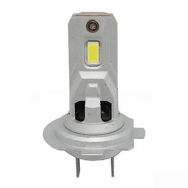 LED sijalica za automobil, dizajnirana za upotrebu kao far. Srebrne je boje i ima kompaktan dizajn sa vidljivim LED čipom na prednjoj strani. Sijalica je opremljena standardnim priključkom za laku instalaciju u odgovarajuće farove vozila. Njena konstrukcija ukazuje na dugotrajnost i efikasnost u osvetljavanju puta.