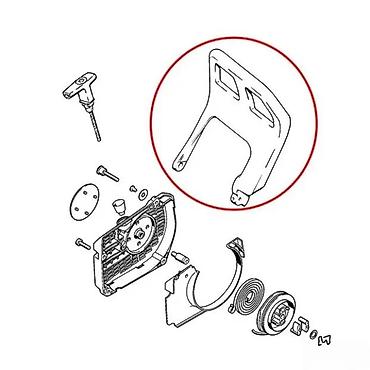 - Kompatibilnost: namenjeno za modele motornih testera sa sličnim sistemom startera kao na priloženom dijagramu; proveriti oblik i tačke oslonca sa postojećim delom.