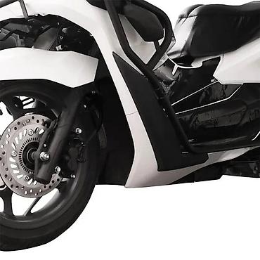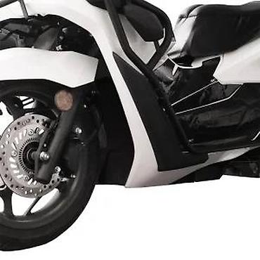 Isporučuje se set od dve komponente (leva i desna). Odlično pristaje skuterima s prikazanim tipom bočnog rama/očvrsnuća; proveriti dimenzije i kompatibilnost sa modelom skutera pre ugradnje.