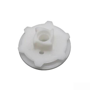 - Rezervni deo od čvrste bele plastike (najlonski tip), izrađen kao kružni točak sa centralnim navojnim/ležišnim otvorom i zvezdastim pogonskim nastavkom.