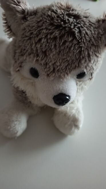 Prelep plišani haski, dužine oko 35–40 cm. Veoma mekan, pufnast i