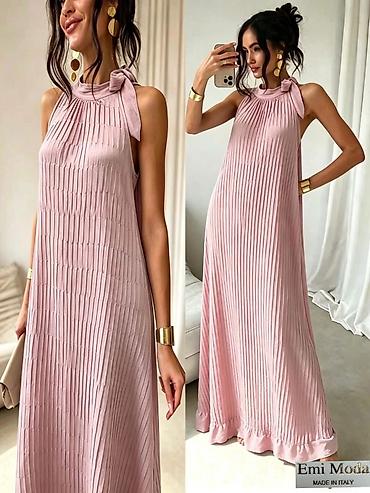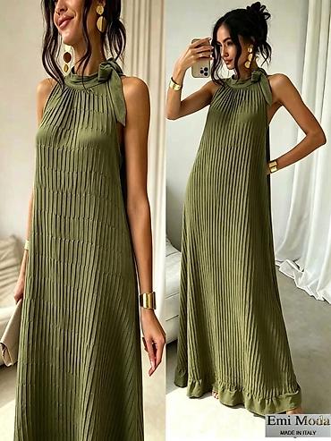 Plisirana maxi haljina sa mašnom na ramenu – Emi Moda, Made in Italy.