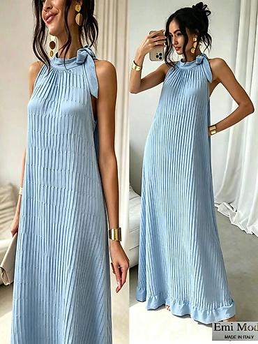 Elegantne haljine i kombinezon – više modela - Kraljevsko plava maxi haljina (veličina 44): duga silueta sa sitnim naborima od struka nadole, okrugli izrez i dugi rukavi sa širim manžetnama. Leprš...