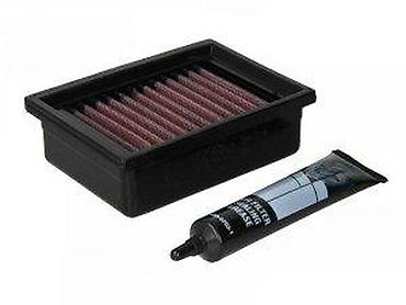 Pravougaoni K&N filter za vazduh sa naboranim elementom u crvenkasto-ljubičastoj boji, uokviren crnim plastičnim okvirom. Dizajniran je za optimalan protok vazduha i zaštitu motora. Uz filter dolazi i tuba K&N masti za zaptivanje vazdušnog filtera, koja obezbeđuje sigurno i čvrsto prianjanje, sprečavajući ulazak nečistoća. Ovaj komplet je pogodan za održavanje performansi i dugotrajnosti motora.