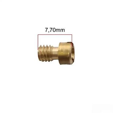 Predmet je mesingana mlaznica karburatora, dizajnirana za preciznu regulaciju protoka goriva. Njegova kompaktna veličina i navojna konstrukcija omogućavaju jednostavnu ugradnju i zamenu. Dužina mlaznice je 7,70 mm. Ova komponenta je ključna za optimalno funkcionisanje motora, obezbeđujući pravilno mešanje vazduha i goriva.