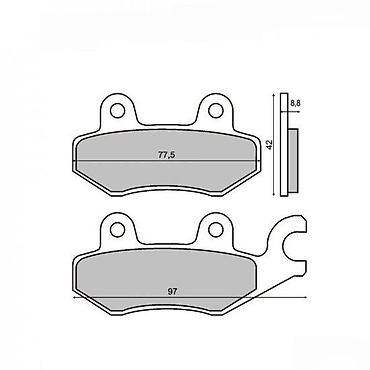 - Gornja pločica: širina frikcione površine 77,5 mm, visina 42 mm, ukupna debljina 8,8 mm.
