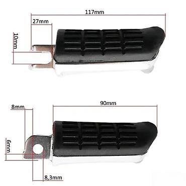 - Pogodno kao zamena za mnoge standardne držače nogu na skuterima i motociklima (proveriti mere sa postojećim nosačem)