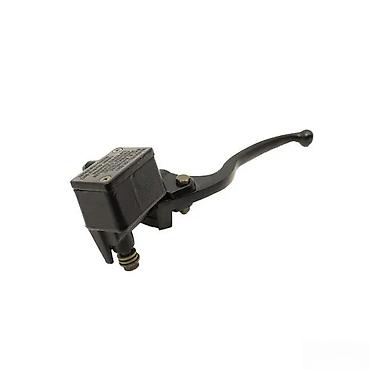 Prednja kočnica sa ručicom i glavnim cilindrom, dizajnirana za motocikle. Izrađena je od metala u crnoj boji, što osigurava izdržljivost i estetsku usklađenost. Integrisani glavni cilindar hidrauličnog sistema kočenja omogućava efikasno i pouzdano kočenje. Ručica je ergonomski oblikovana za udobno rukovanje. Kompatibilna je sa različitim modelima motocikala koji koriste hidraulične kočnice.