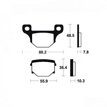 - Dimenzije prednjih pločica: širina 88,2 mm, visina 48,5 mm, debljina 7,8 mm
