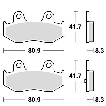 Napomena: Pre kupovine proveriti dimenzije (80,9 x 41,7 x 8,3 mm) i oblik nosača sa otvorima na postojećim pločicama ili specifikaciji kočionog sistema. Poželjno je montirati u paru po točku i pravilno uhodati nakon ugradnje.