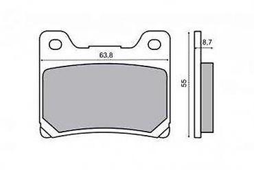 - Dimenzije jedne pločice: širina 63,8 mm, visina 55 mm, debljina frikcionog sloja 8,7 mm
