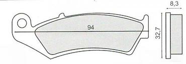 - Dimenzije pločice: dužina 94 mm, visina 32,7 mm, debljina frikcionog sloja 8,3 mm