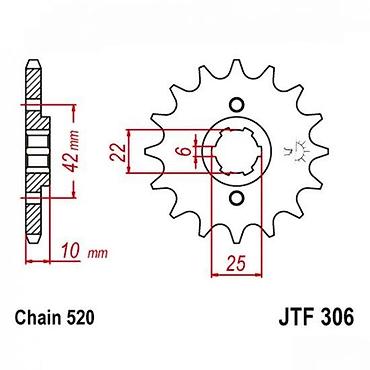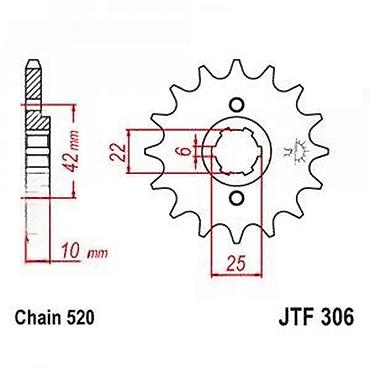 Pogodno za motocikle koji koriste JTF 306 nosač/šplajn i lanac 520. Idealan za prilagođavanje prenosa (15 zuba za brže ubrzanje uz zadržavanje dobre krajnje brzine). Pre kupovine uporedite dimenzije i oznaku šplajna sa svojim modelom.