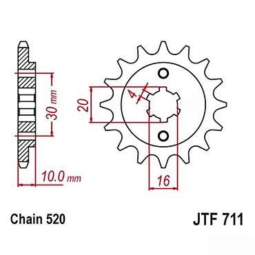 Prednji lančanik JTF 711 – za lanac 520 Specifikacije: - Tip: prednji