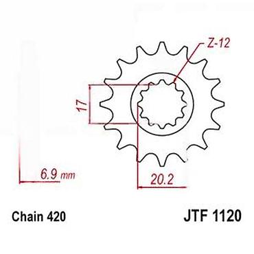 Prednji lančanik JTF1120 za lanac 420 - Tip: prednji lančanik