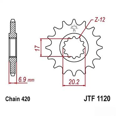 Pogodno za zamenu ili preračun prenosa na vozilima koja koriste JTF1120 standard i lanac 420. Precizne mere sa tehničkog crteža olakšavaju proveru kompatibilnosti. Na telu lančanika je utisnut broj zubaca radi lake identifikacije.