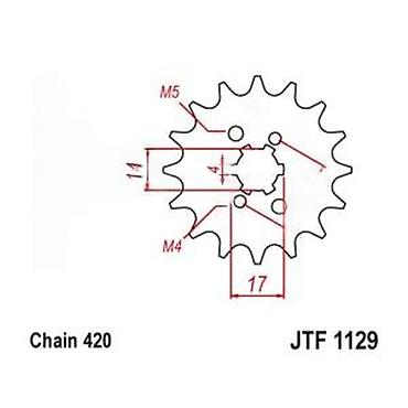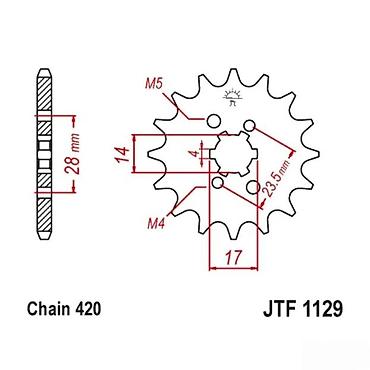 Pogodno za mopede, skutere i pit/mini motore koji koriste standard JTF1129 sa lancem 420. Precizno mašinski obrađen čelik za dugotrajnost i tačan prenos. Ugravirana oznaka modela radi lake identifikacije.