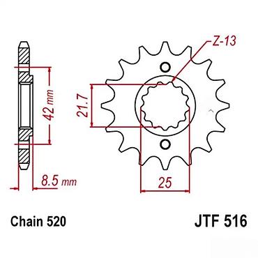 Prednji lančanik JTF516 za motocikle - Tip lanca: 520 - Broj zuba