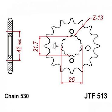Prednji lančanik za motocikl – JTF 513 - Tip lanca: 530 - Broj