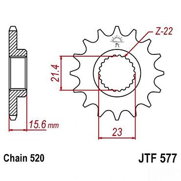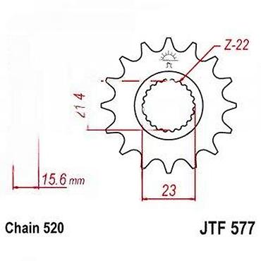 - Namenjeno prenosu snage u kombinaciji sa lancem 520, za pogon prednjeg zupčanika na motociklima kompatibilnim sa specifikacijom JTF577