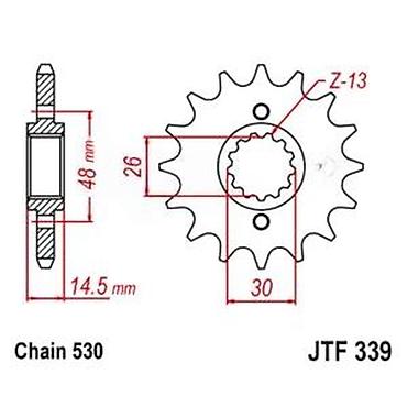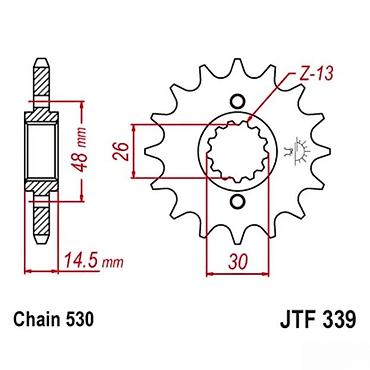 - Namenjen za: motocikle koji koriste standard lanca 530 i JTF339 profil osovine (više Yamaha/Kawasaki/Suzuki modela – proveriti kompatibilnost sa specifikacijom vozila)